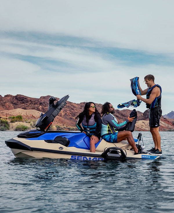 The Wake Pro delivers the most stable ride in the industry on a PWC purpose-built for tow sports. With standard removable ski pylon, board rack and exclusive Ski Mode, it offers extra space for set-up, easy boarding, and a serious 100W Bluetooth Audio System.